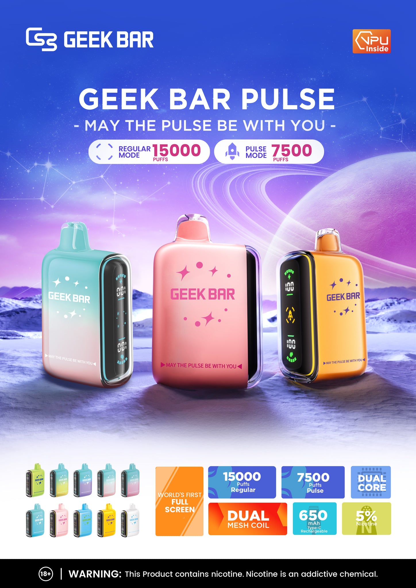 - Puff Count: 15,000 (Regular) / 7,500 (Pulse)
